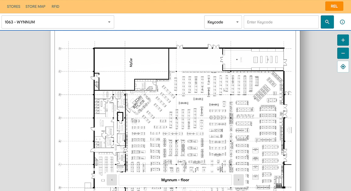 Internal business tool for the RFID functionality showing where on a` shop floor a product was last scanned.